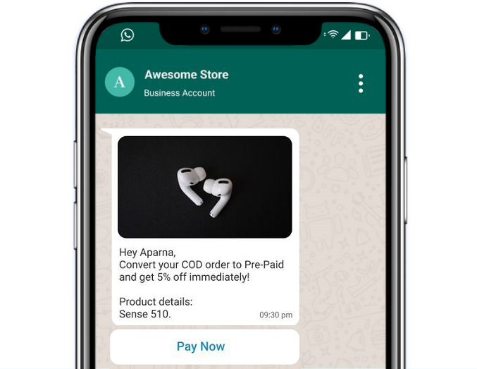 Send WhatsApp messages to convert COD orders to Prepaid orders.